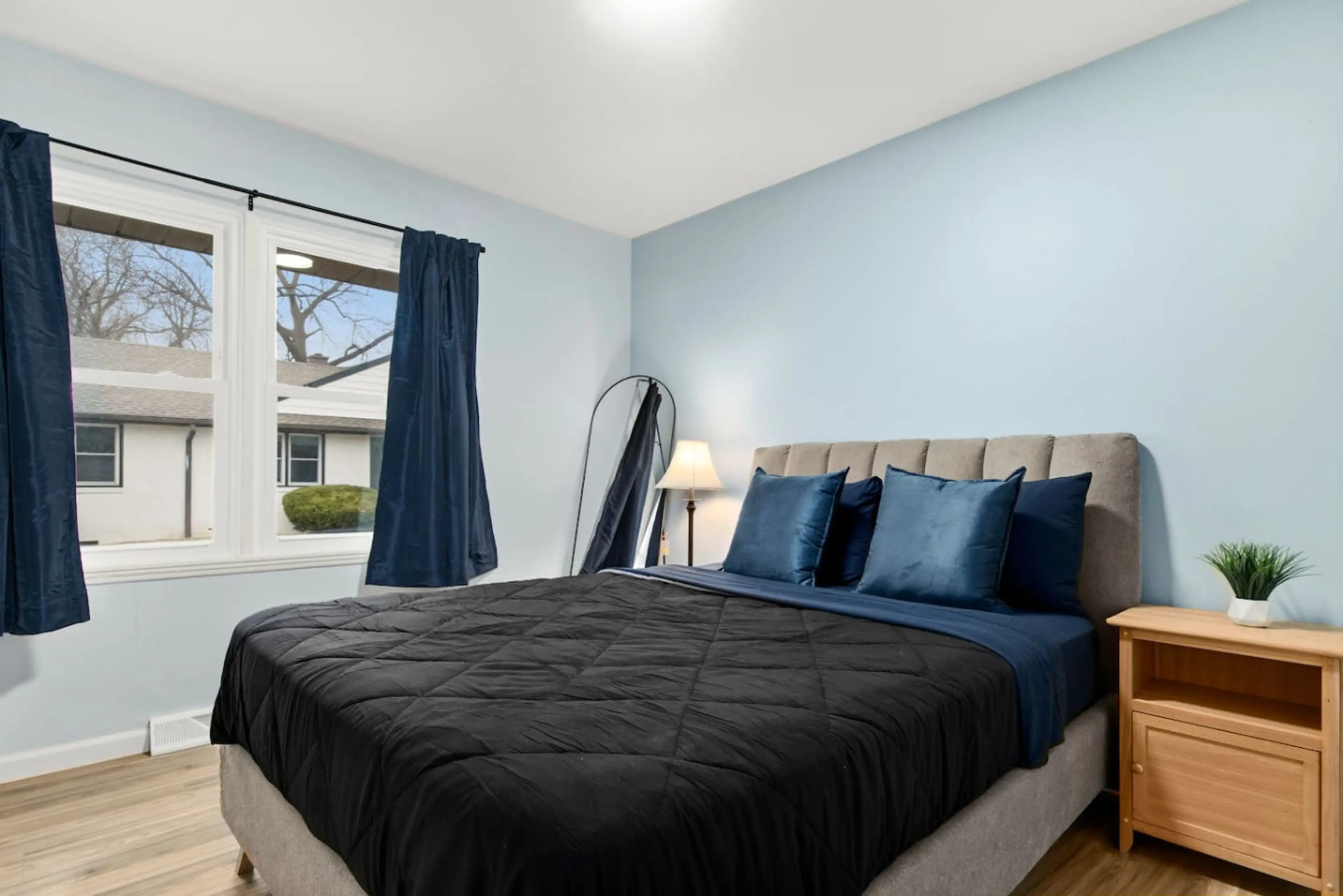 Tucked away in a safe corner is this gem of an apartment complex. Each unit is fully furnished and the kitchen is stocked with all your cooking and serving basics. Full-sized washer & dryer makes for long-term stay-friendly. Your family will be close to everything when you stay at this centrally-loc...